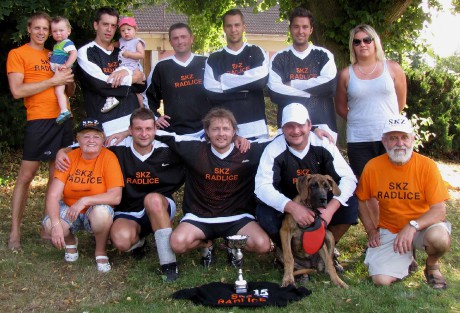 Zleva nahoře Martin Šťastný, Bonda Novák, Roman Tomšů, Petr a Tomáš Přeučilové a čerstvá paní „Pízová“. Dole Dáňa, Petr Holoubek, David Šprincl, Píza Vevera s dogou Rumbou, velký Zoufalec Pepa a další pohár do velkolepé sbírky Radlic.